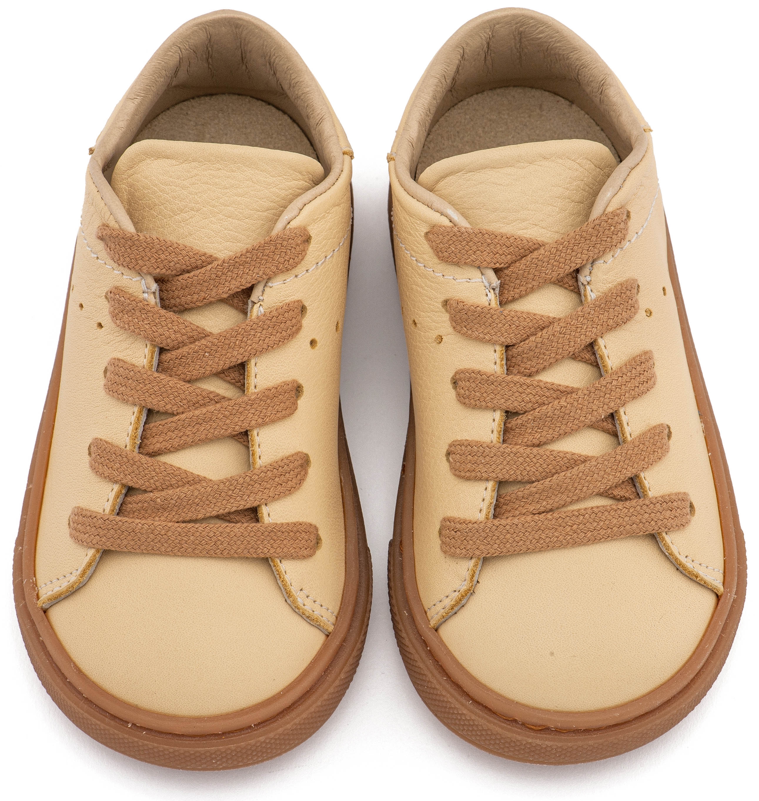 Βαπτιστικό παπούτσι για περπάτημα από την Babywalker !Δετό Δερμάτινο Sneaker από Δέρμα Νάπα σε Καλαμποκί Χρώμα με Κορδόνι Ταμπά.
