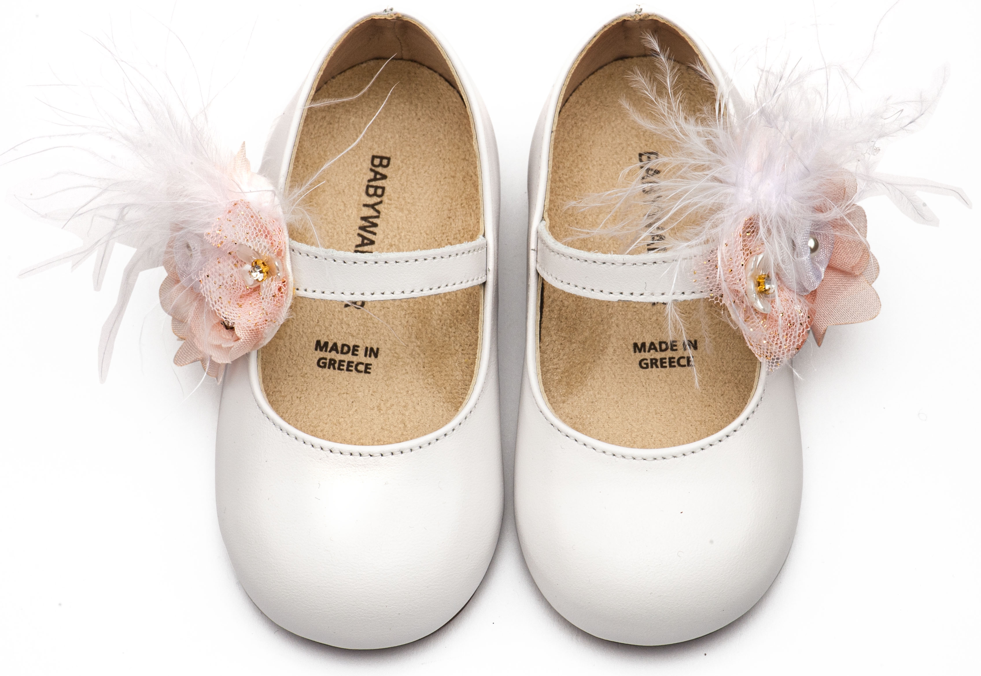 Babywalker Γοβάκι με πούπουλο Λευκό ροζ - Βαπτιστικά παπούτσια για κορίτσι