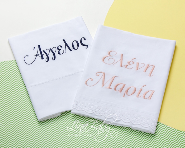 Μπορείτε να κεντήσετε το όνομα του παιδιού στο λαδόπανο και στην πετσέτα με το χρώμα της επιλογής σας. Το όνομα ή τα ονόματα καθώς και το χρώμα, τα σημειώνετε στο επόμενο βήμα στις παρατηρήσεις.