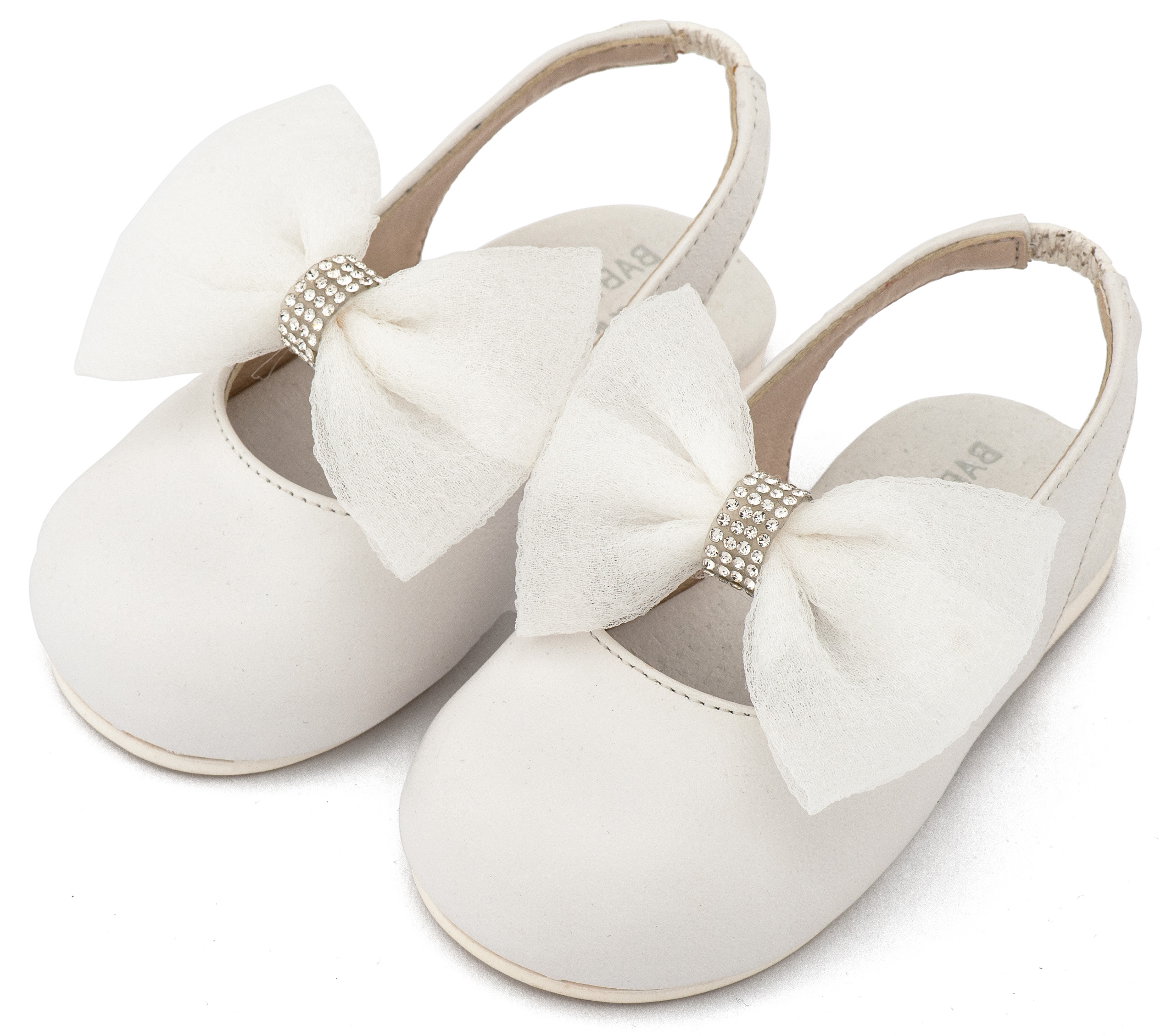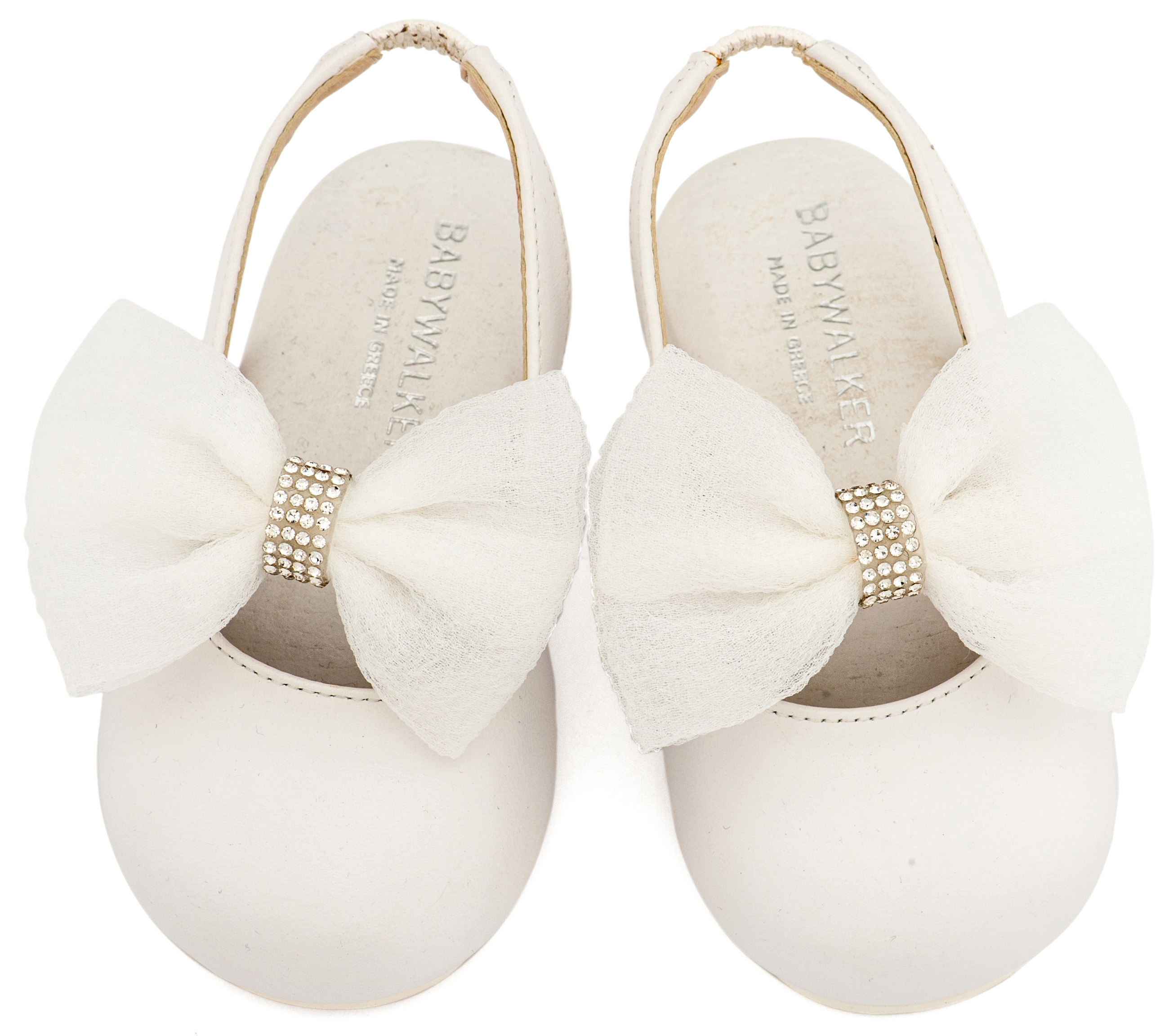 Σαμπό White Chiffon & Στρας - Βαπτιστικά παπούτσια για κορίτσι
