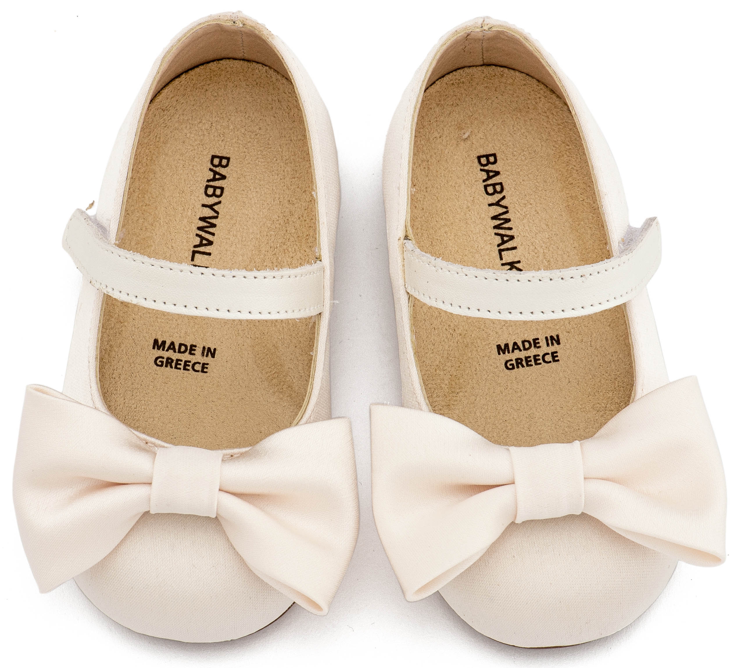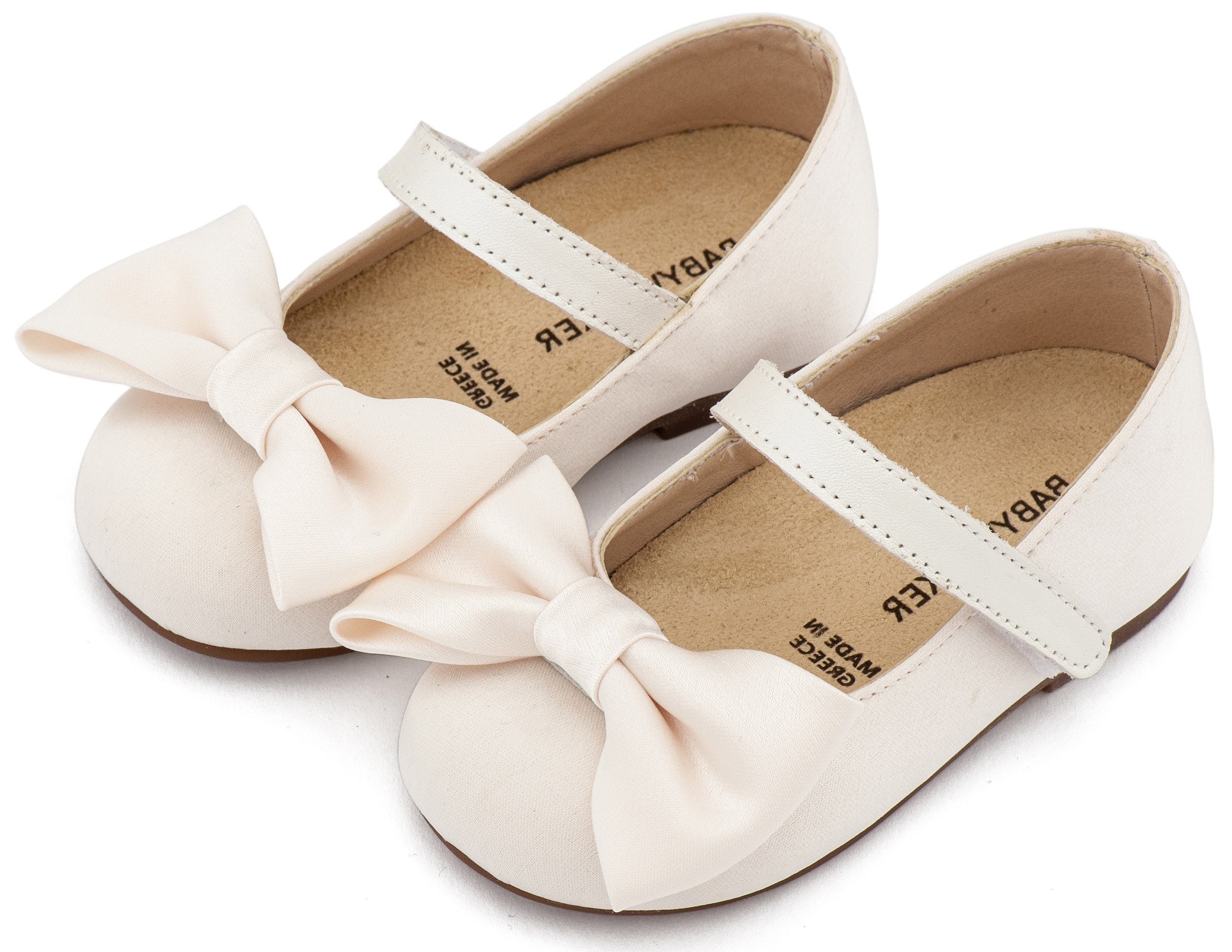 Γοβάκι Μονή Μπαρέτα με Σατέν Φιόγκο Εκρού - Βαπτιστικά παπούτσια για κορίτσι