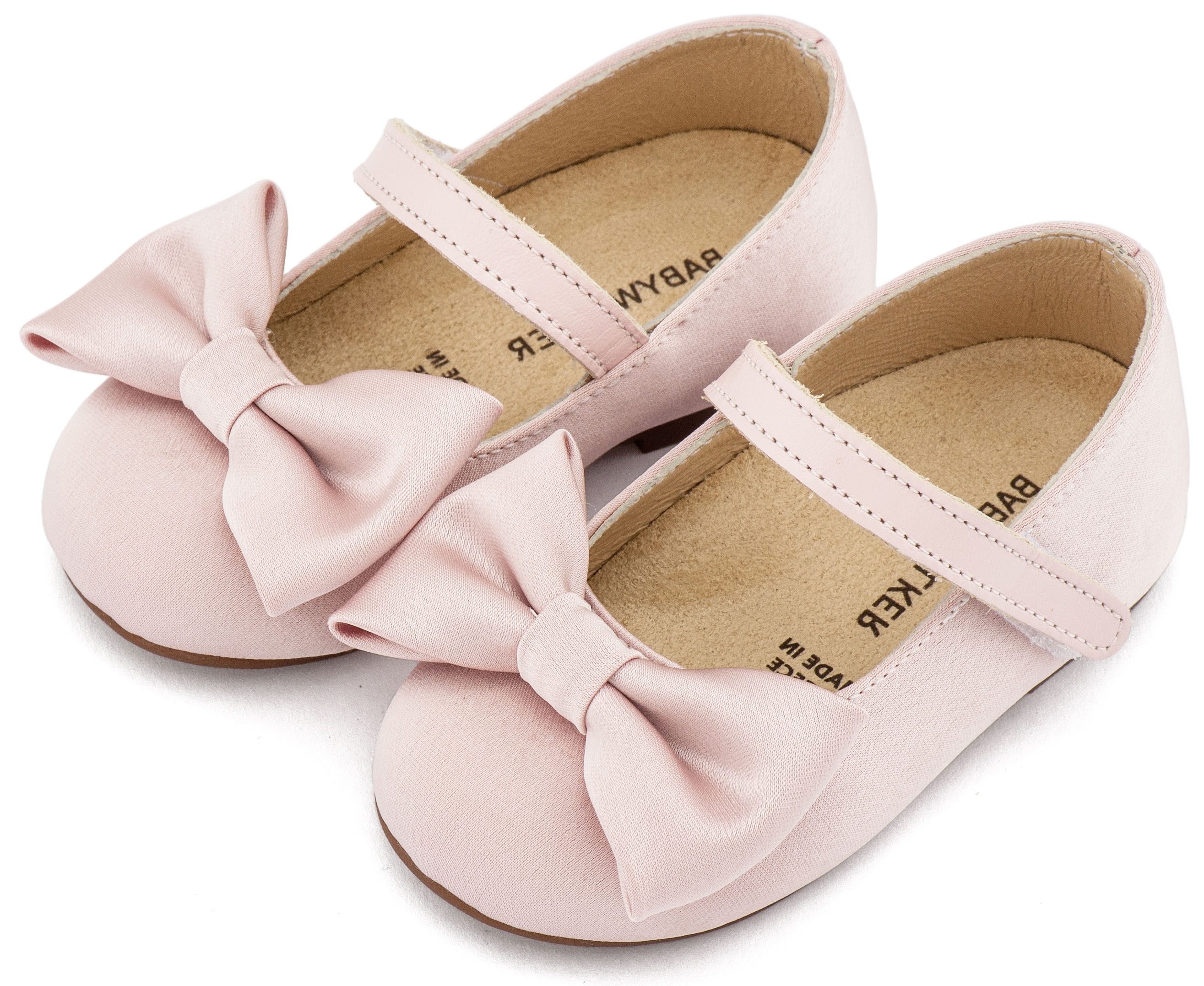 Γοβάκι Μονή Μπαρέτα με Σατέν Φιόγκο Ροζ αντικέ - Βαπτιστικά παπούτσια για κορίτσι