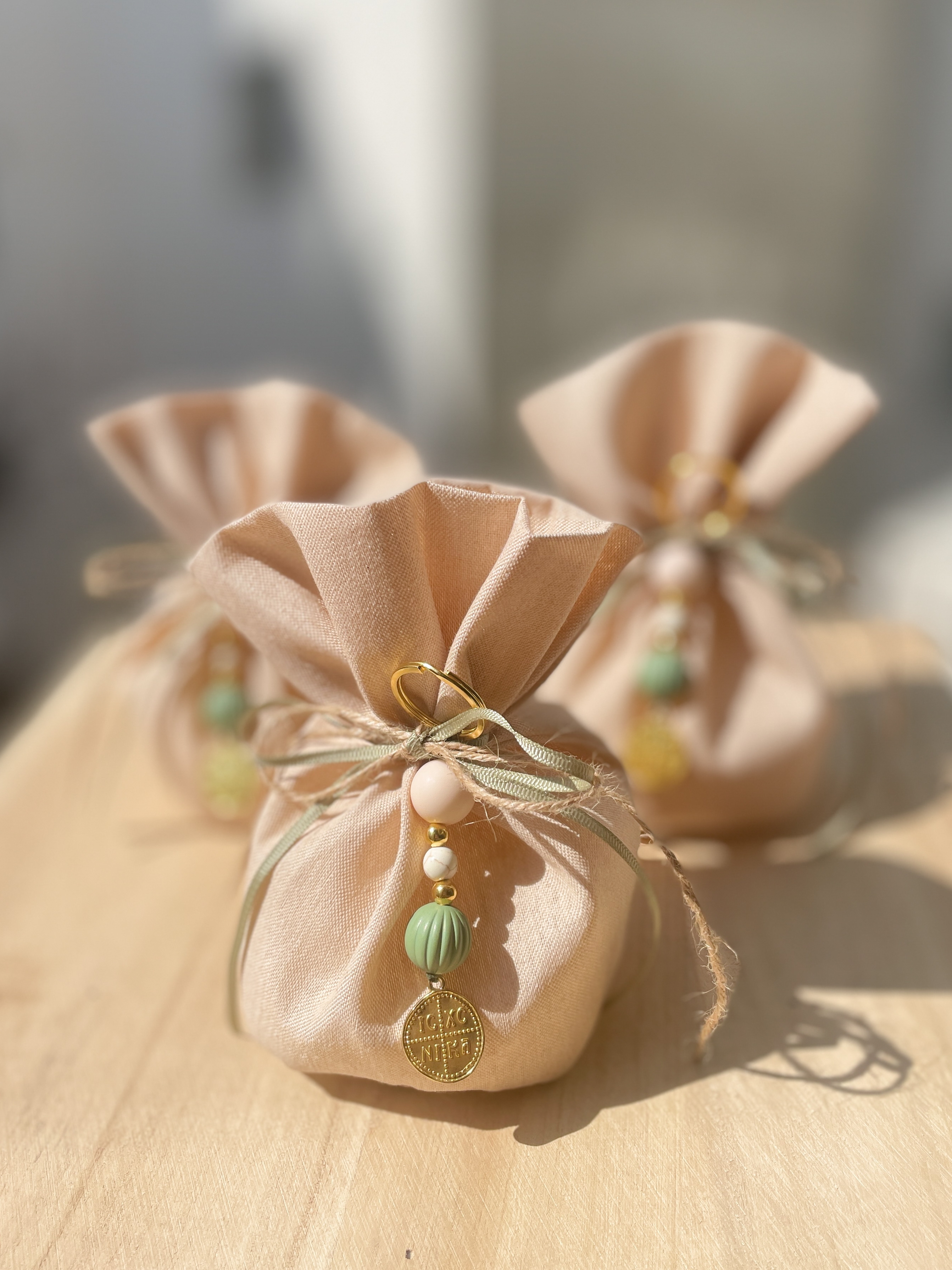 Πουγκί καμβάς με μπρελόκ Κωνσταντινάτο - Μπομπονιέρα βάπτισης για αγόρι