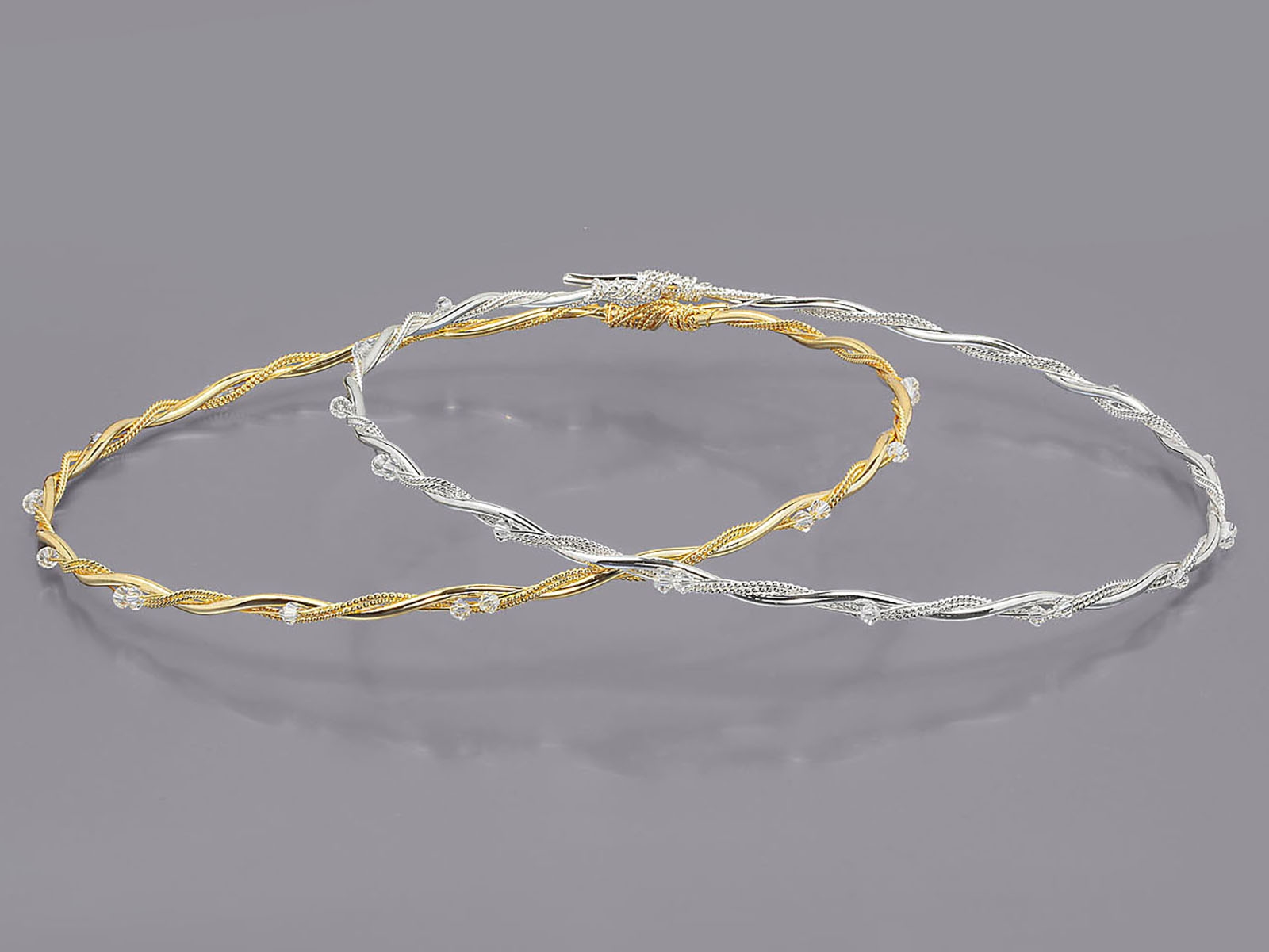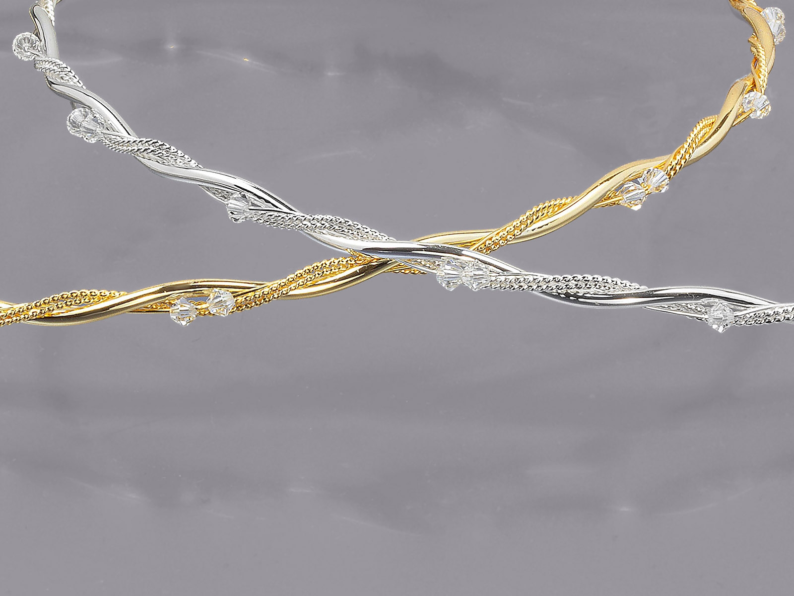 Τα στέφανα είναι επάργυρα και επίχρυσα, συνοδεύονται από δυο μπουτονίερες για το πέτο σε κουτί πολυτέλειας συρταρωτό με χρυσοτυπία.