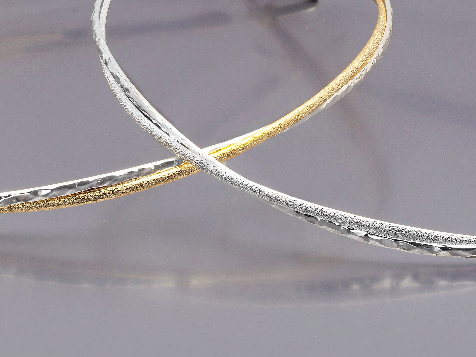 Χειροποίητα στέφανα γάμου επίχρυσα ή επάργυρα. Δύο βέρες πλεγμένες μεταξύ τους, η μια είναι σατινέ επίχρυση και η άλλη γυαλιστερή επάργυρη, διαλέγεται χρωματισμό, ροζ χρυχό, χρυσό ή ασημένια.