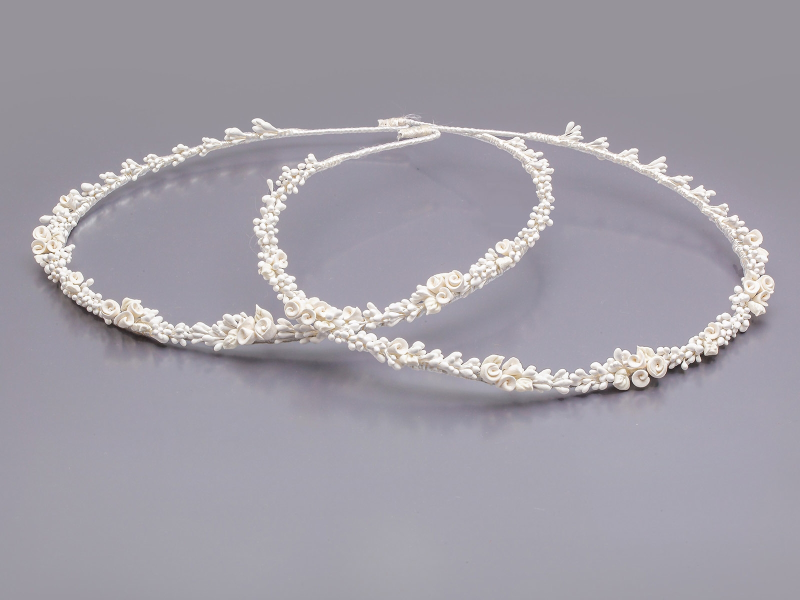 Τα στέφανα είναι χειροποίητα με πορσελάνινα λουλούδια και δαντέλα!