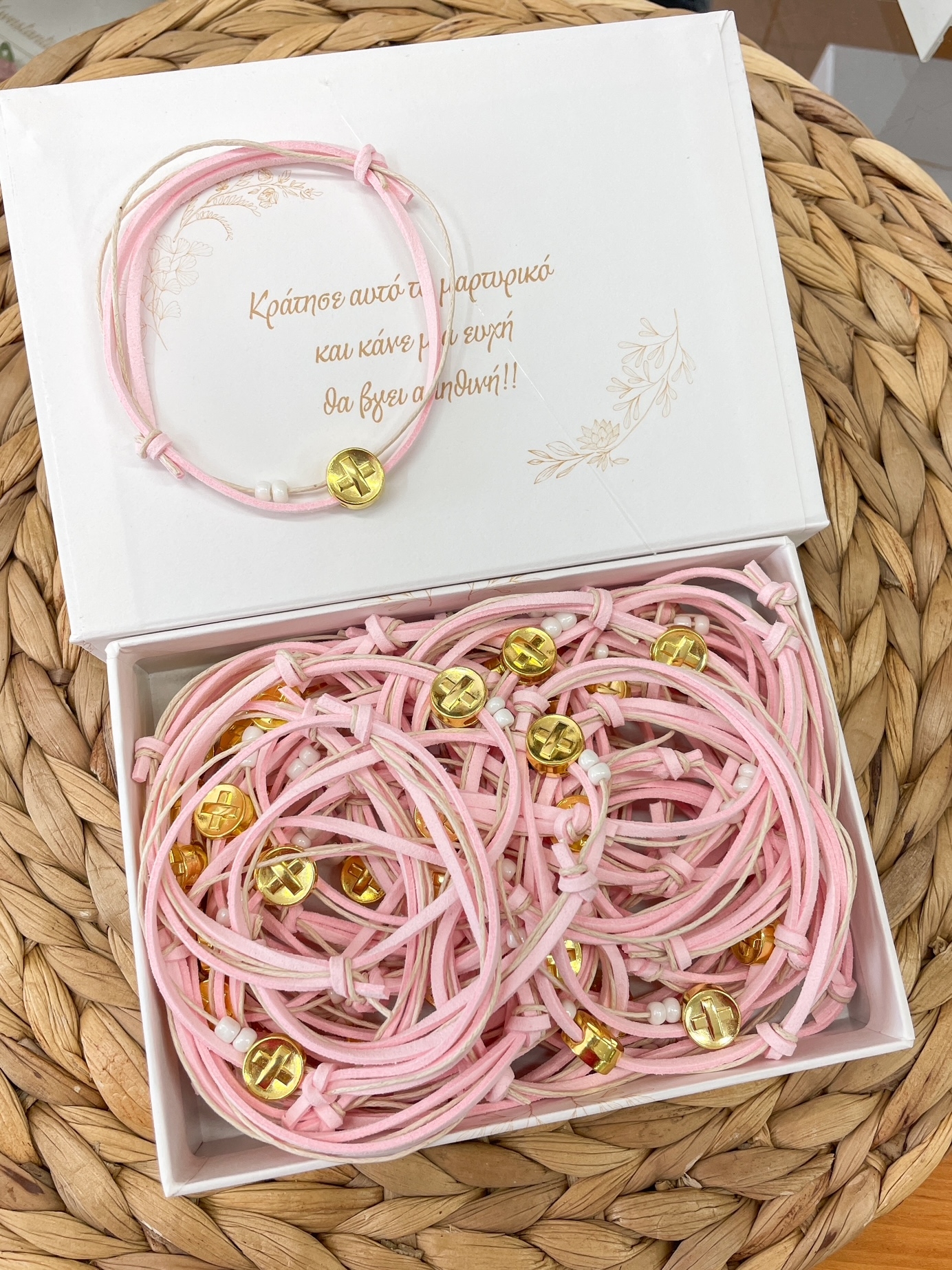 Μαρτυρικά βάπτισης σε ροζ απόχρωση με χρυσό σταυρό. Η τιμή αφορά τα 50τμχ χωρίς κουτί.