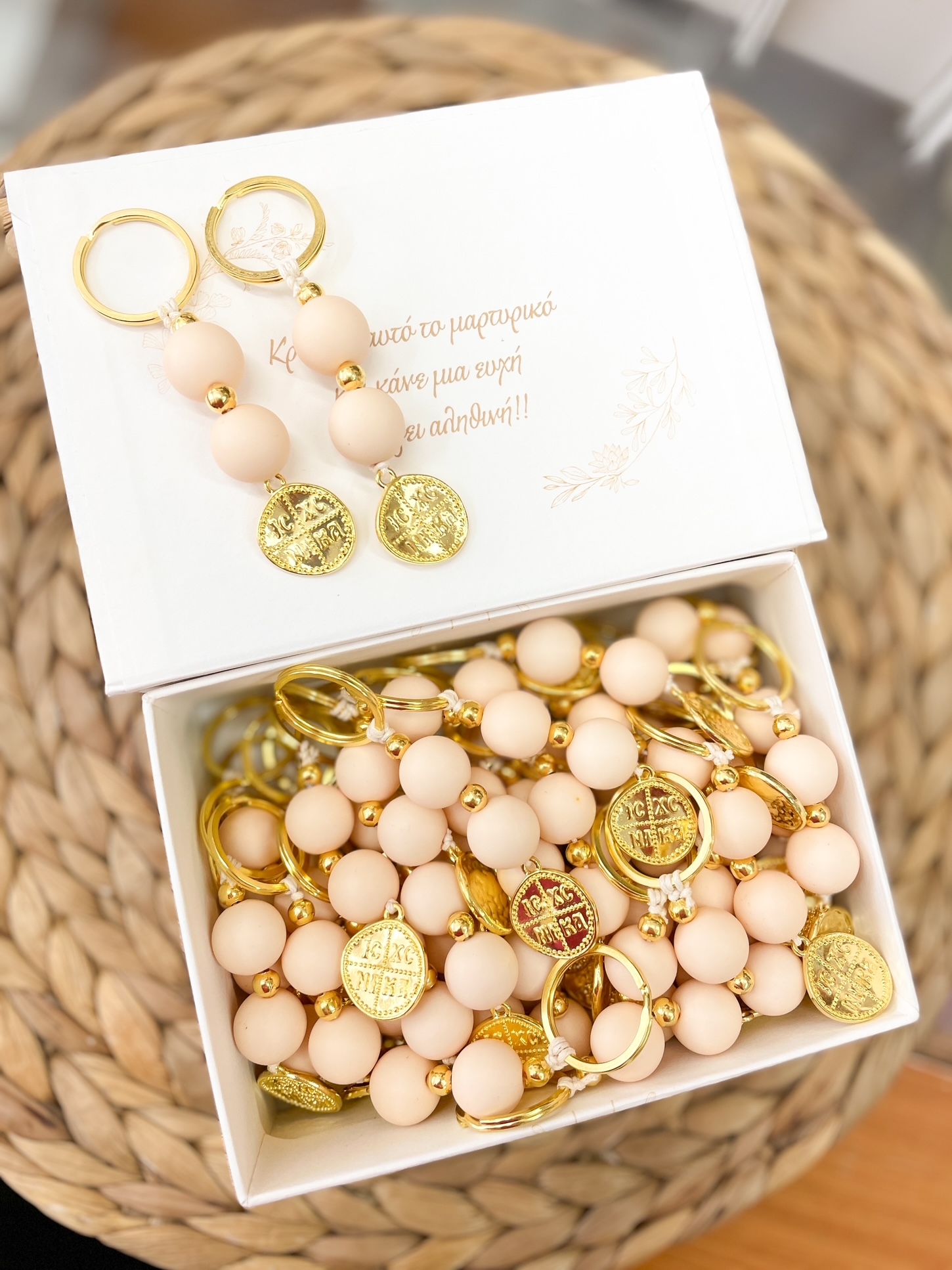 Μαρτυρικά βάπτισης μπρελόκ με κωνσταντινάτο και ιβουάρ χάντρες.