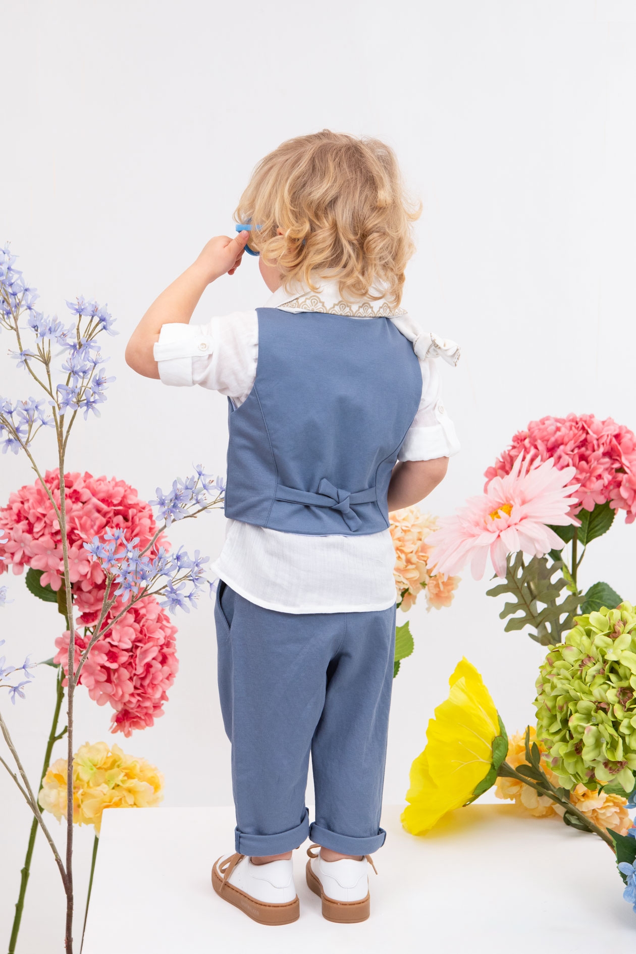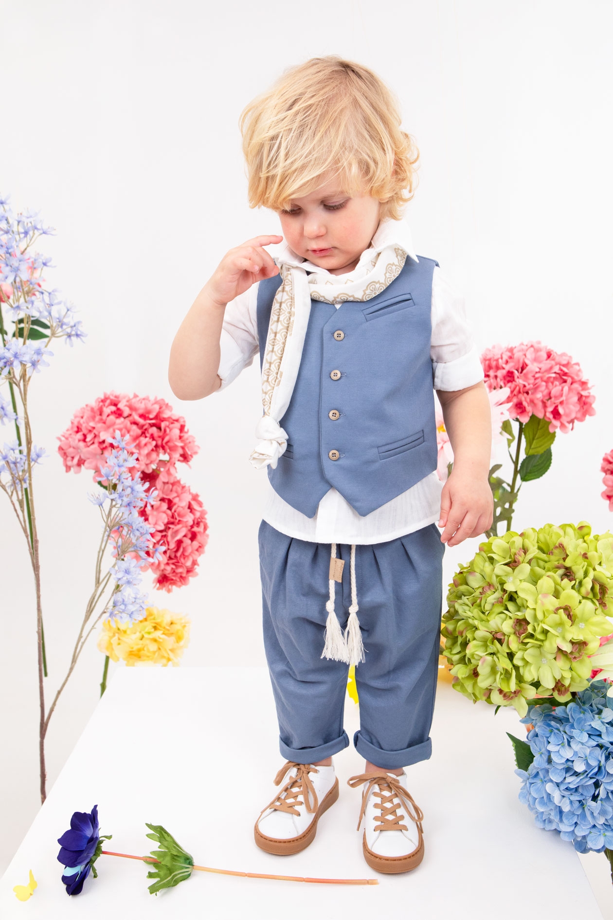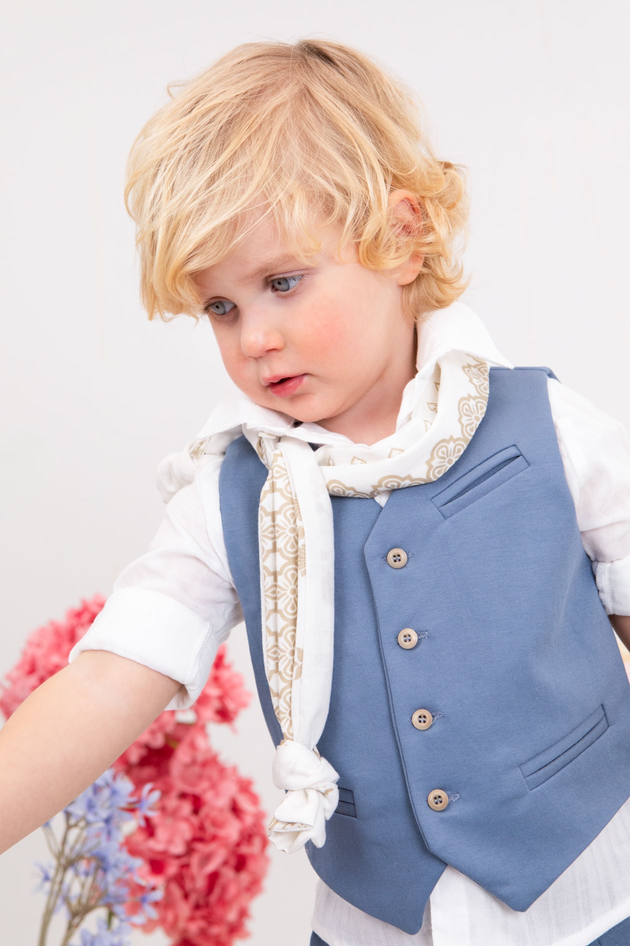Ο Cristian είναι η επιτομή του κομψού για μοναδικές εμφανίσεις. Αποτελείται από πετρόλ παντελόνι εξαιρετικής ποιότητας, λευκό πουκάμισο και πετρόλ γιλέκο διακοσμημένο με μπεζ κουμπιά. Αξεσουάρ είναι το εκρού-μπεζ κορδόνι για ζώνη, το λευκό καβούρι και το λευκό printed φουλάρι του.